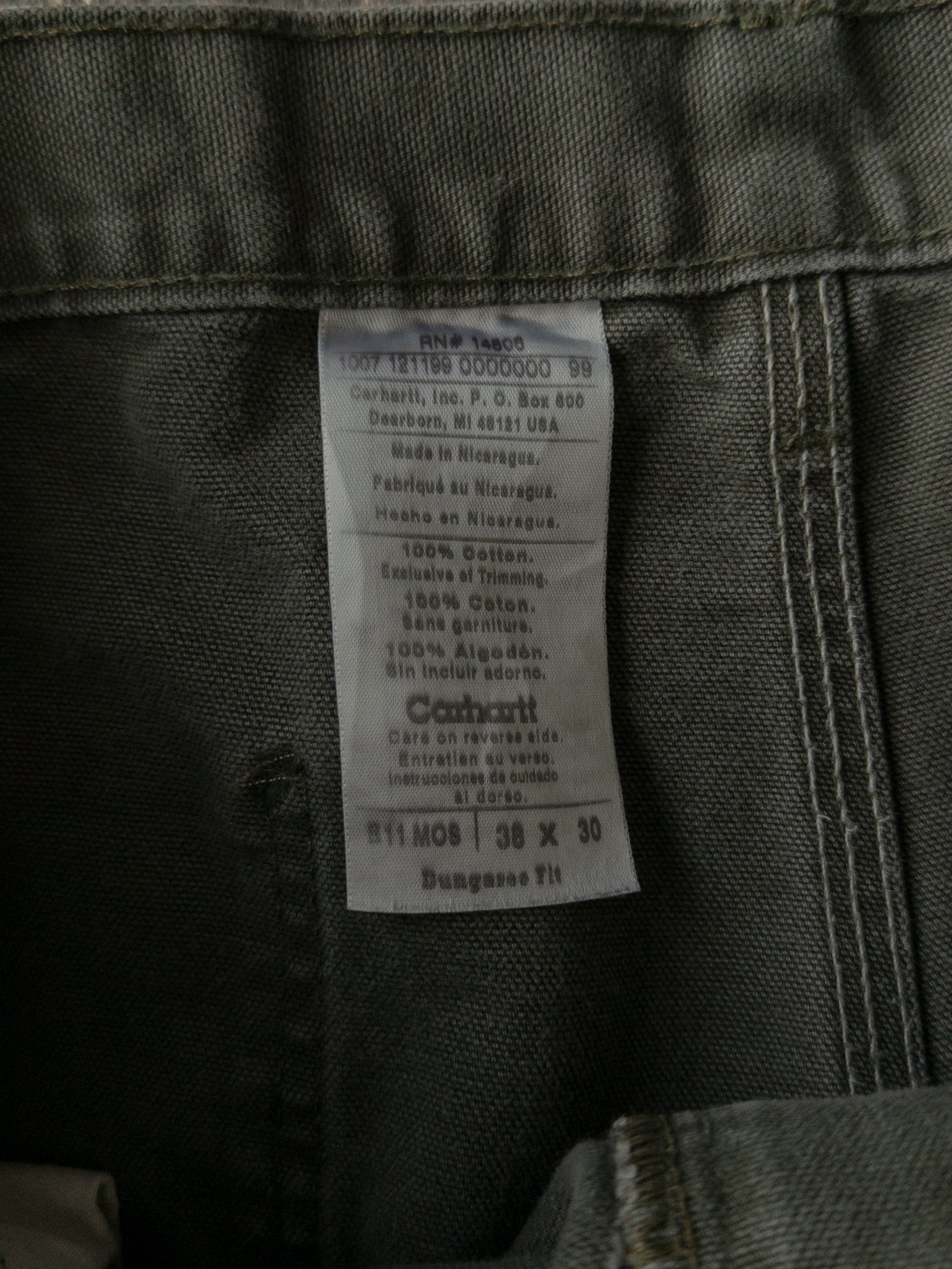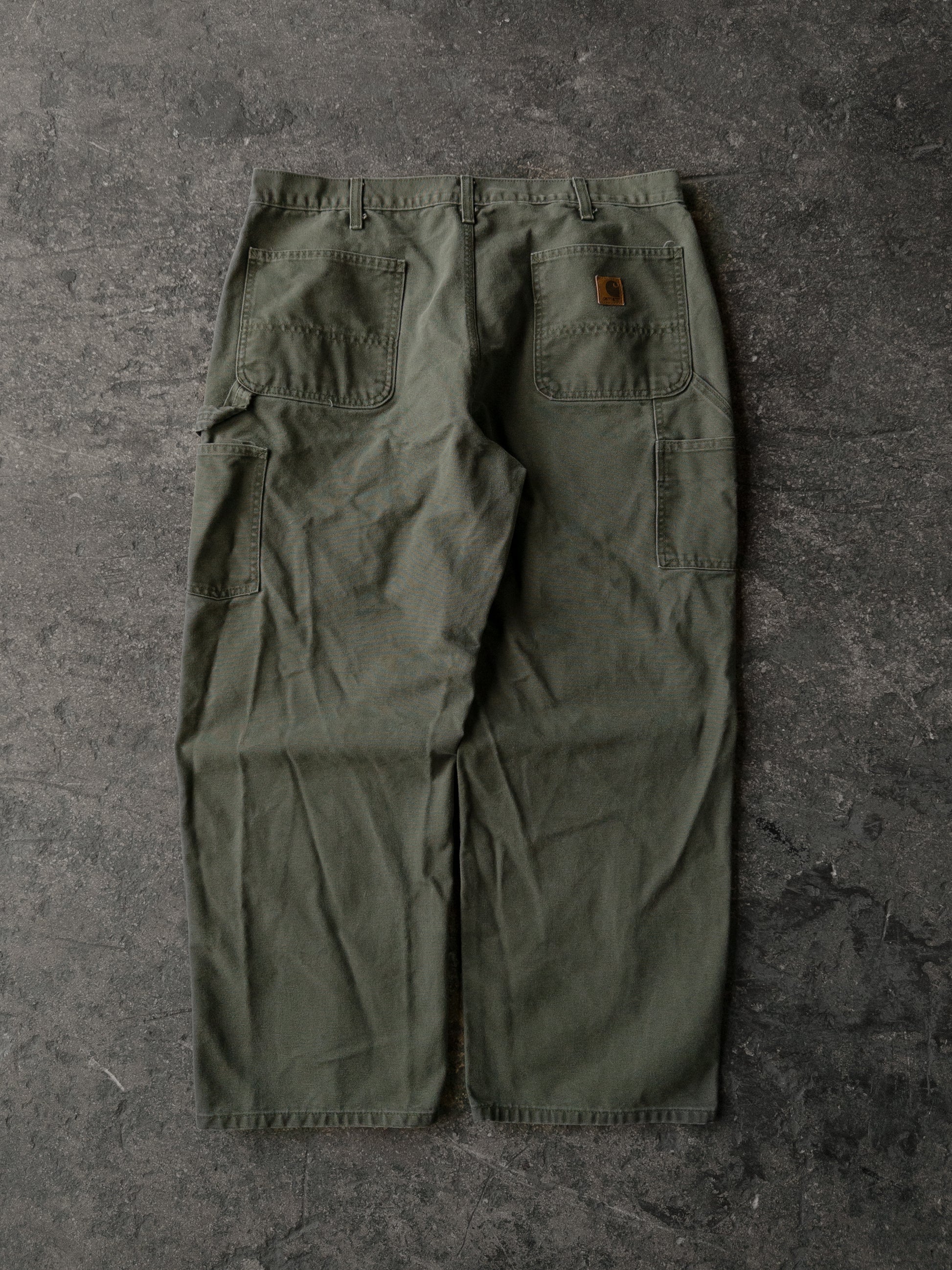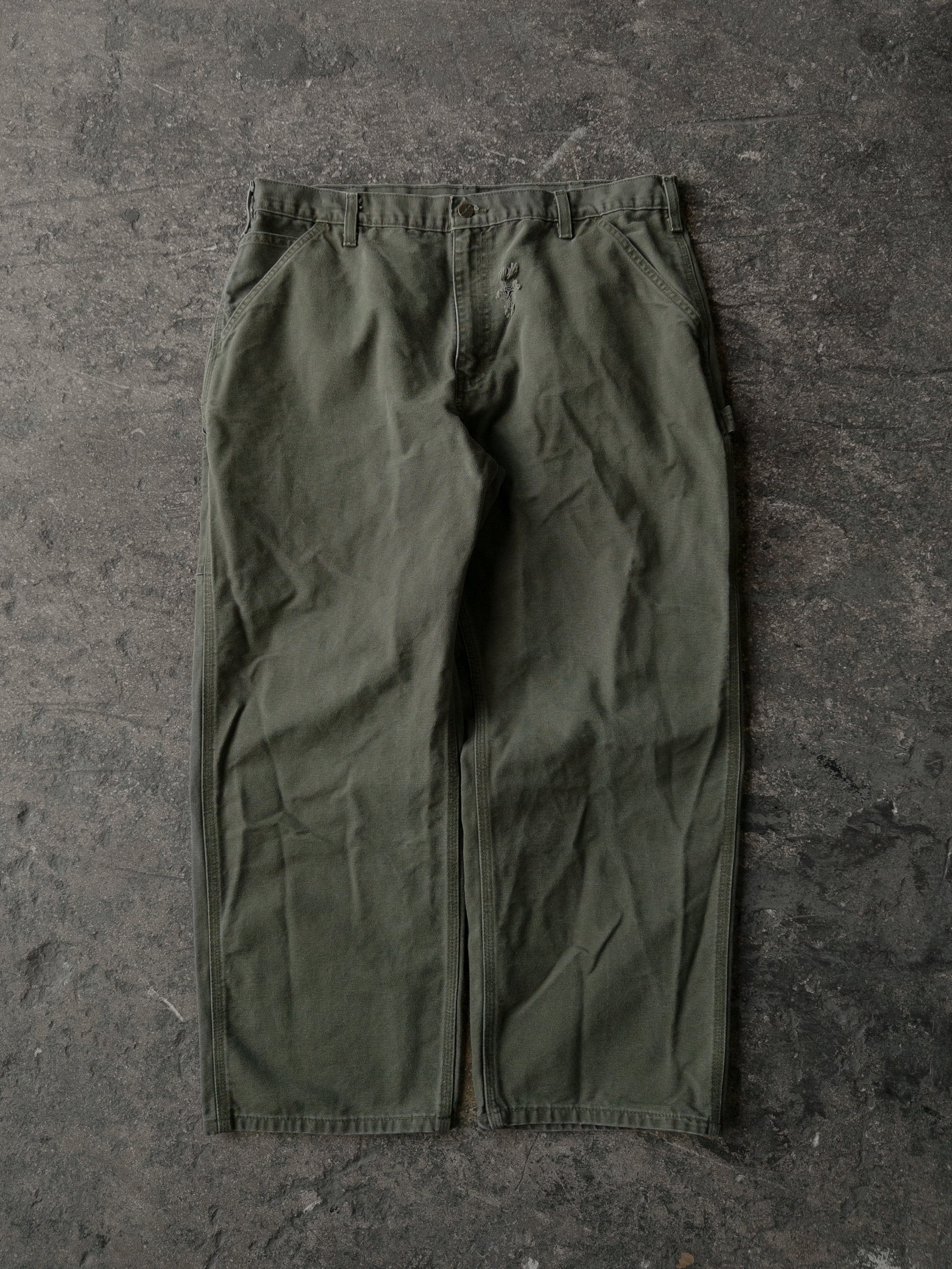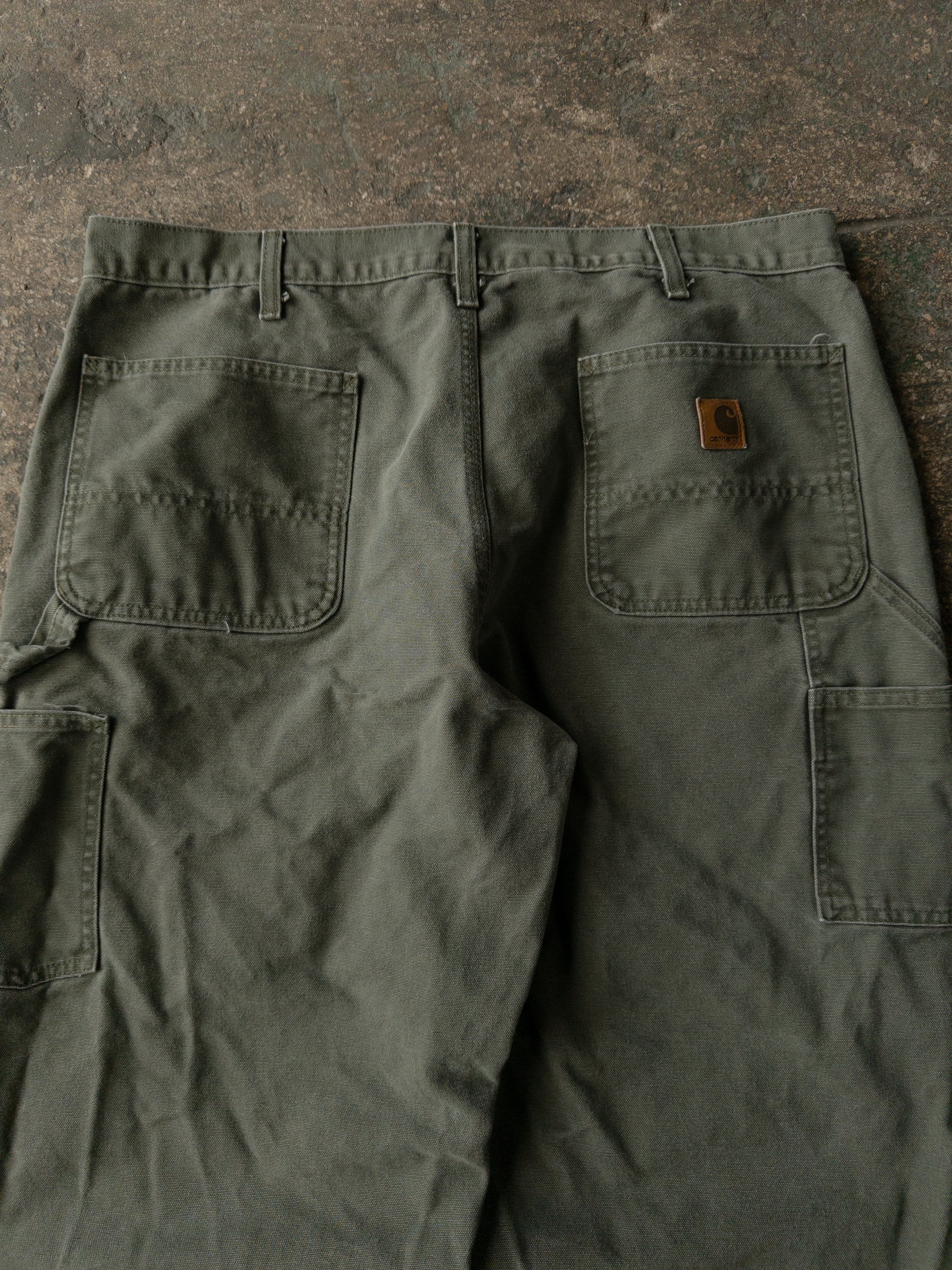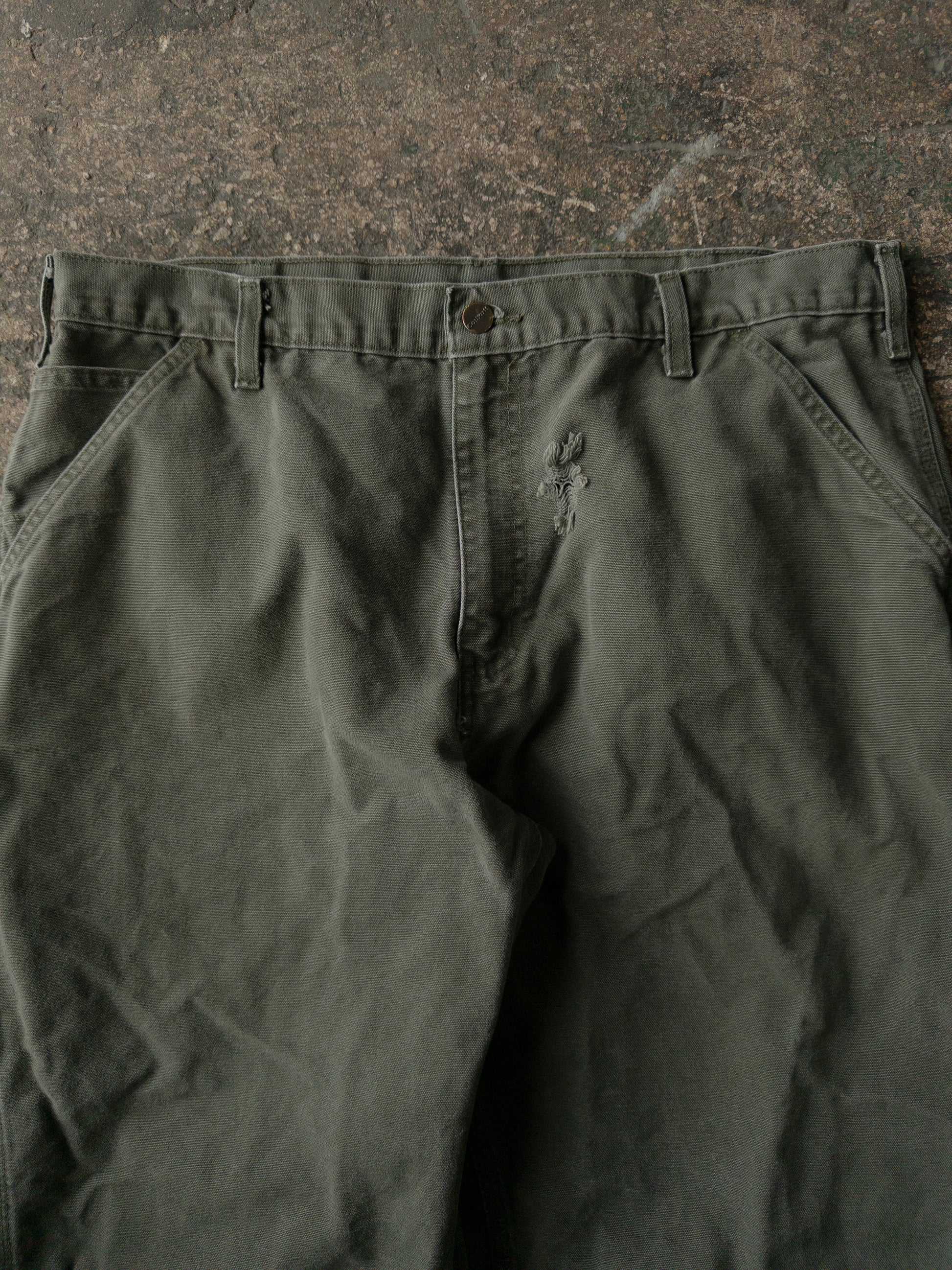 Vintage 2000s Carhartt Distressed Green Dungaree Carpenter Pants - 36x30