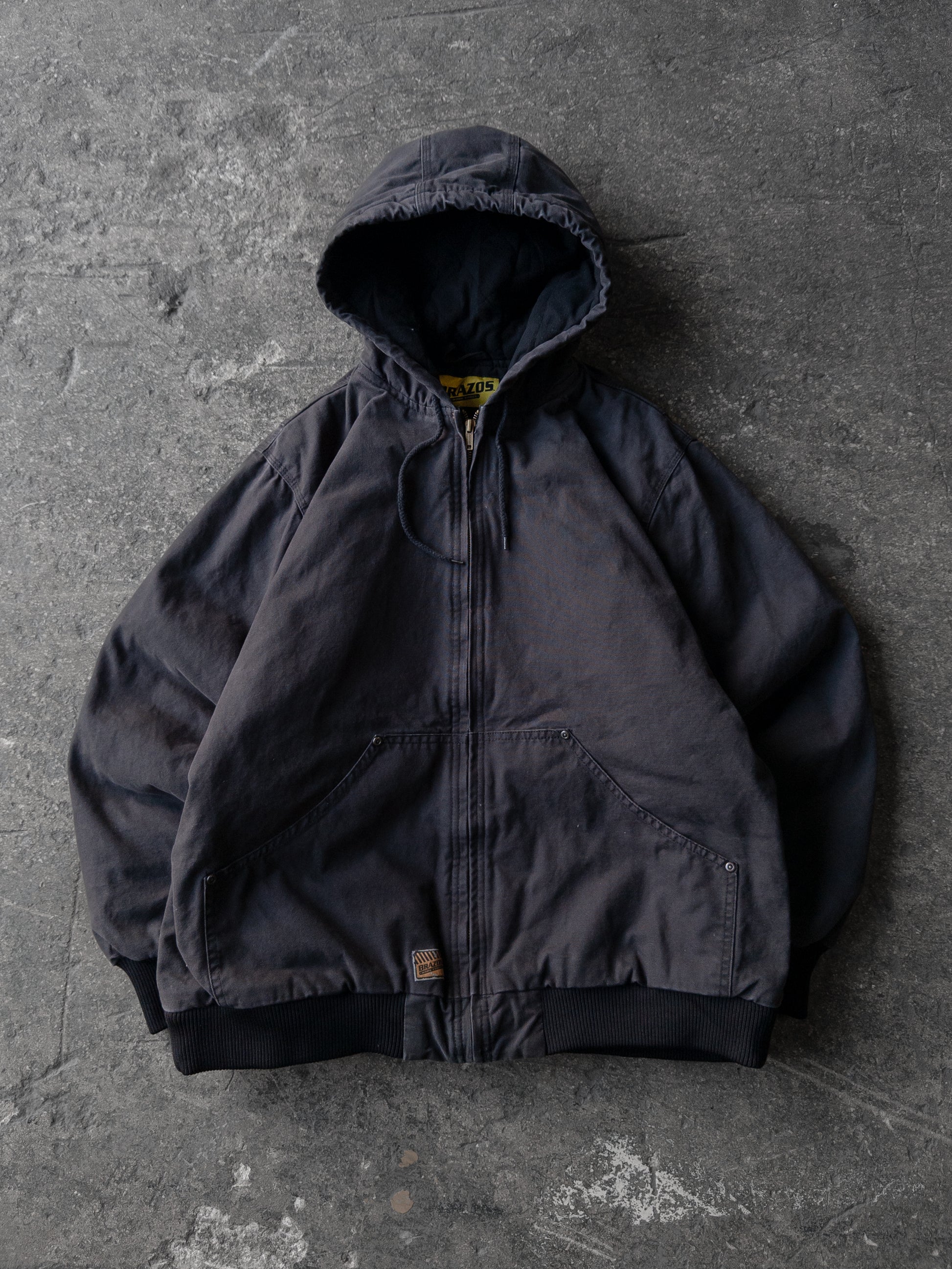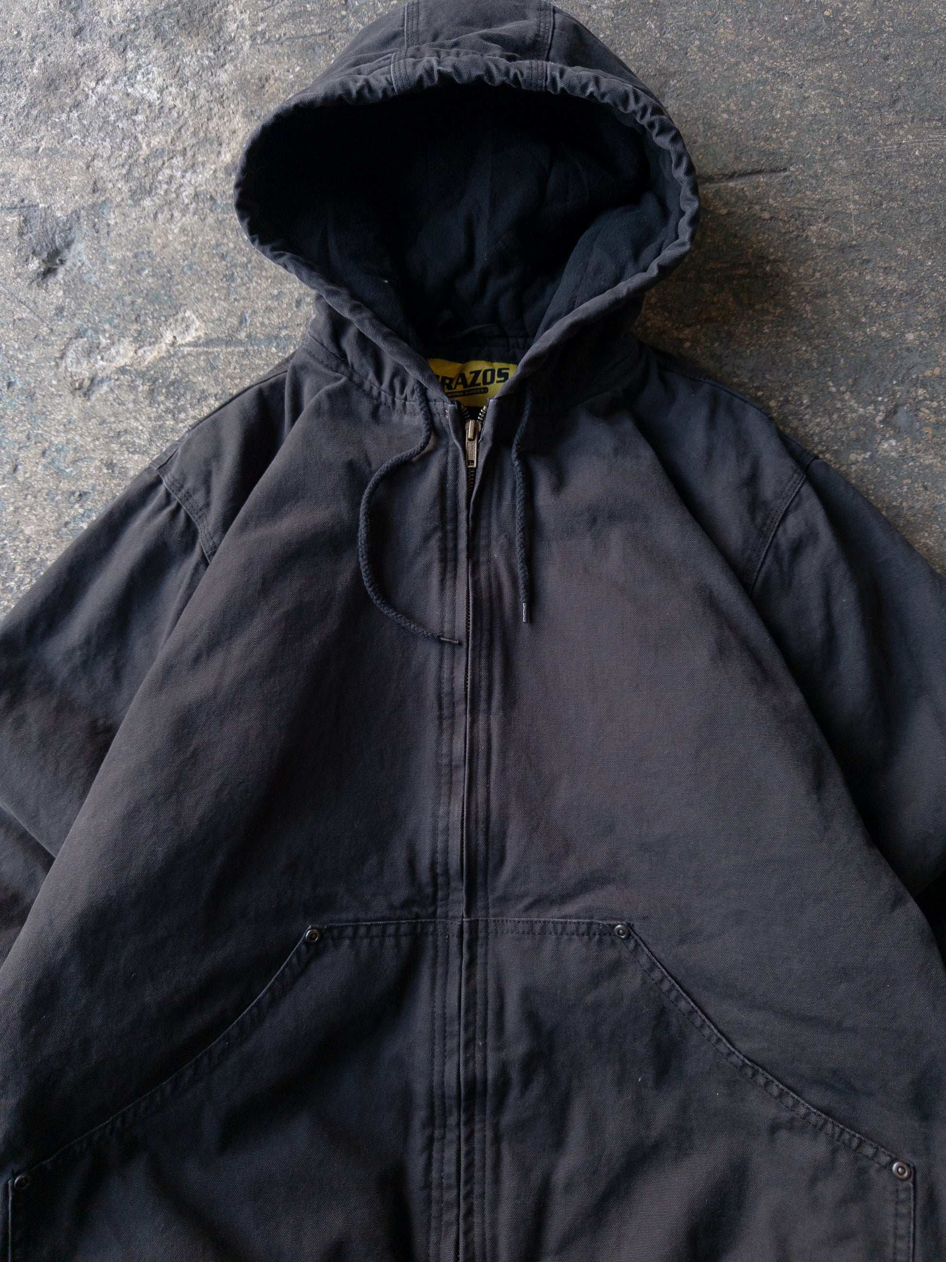 Vintage 2000s Brazos Faded Black Hooded Work Jacket - Large