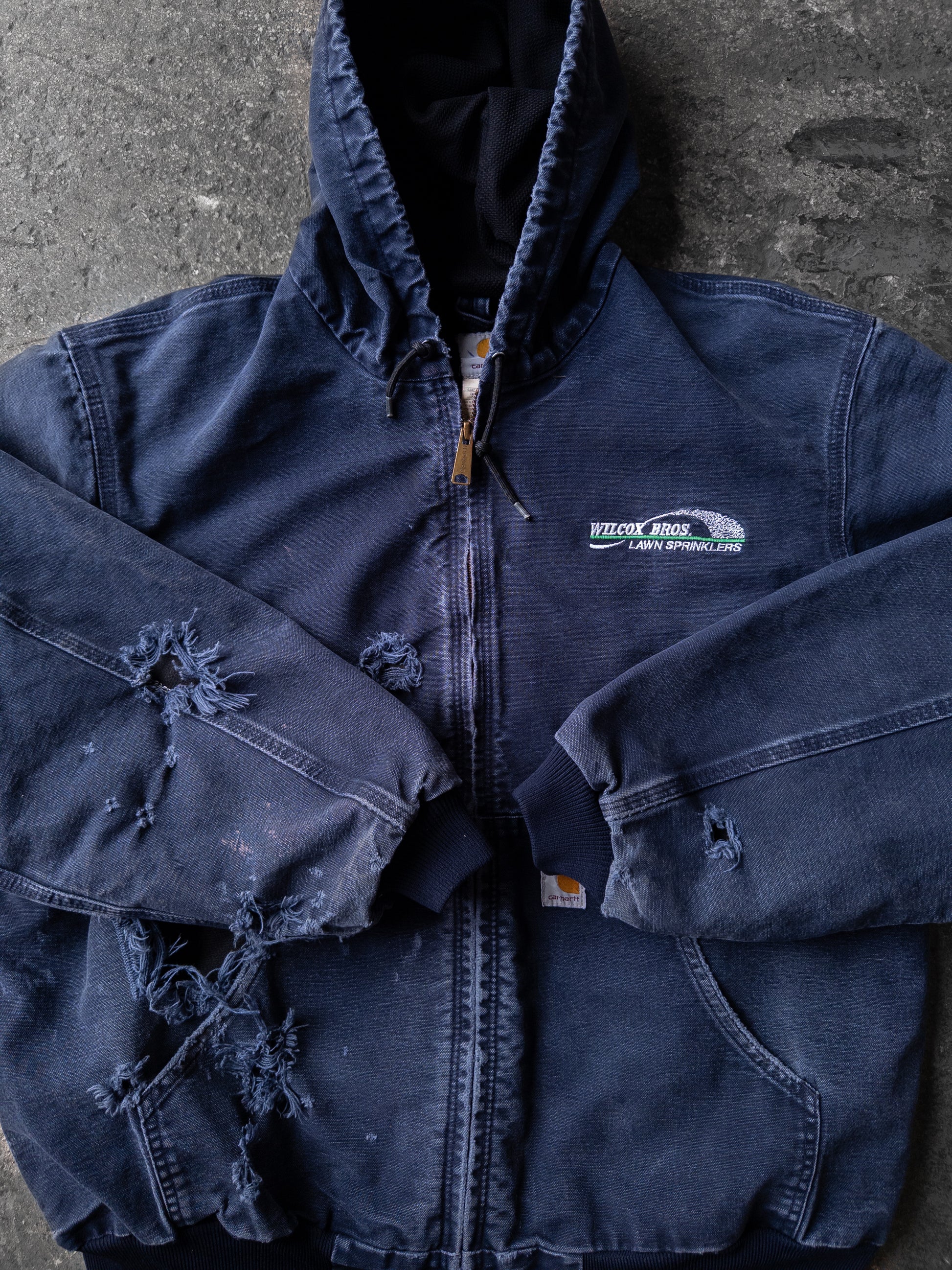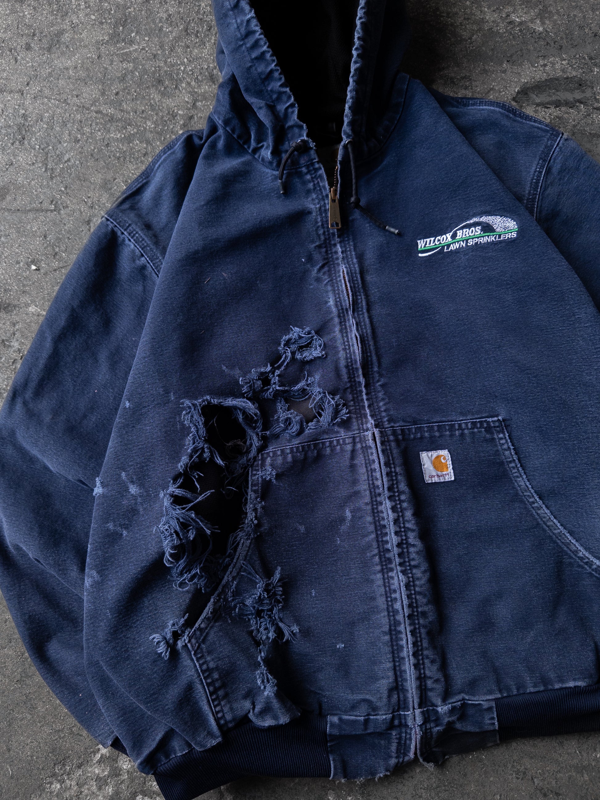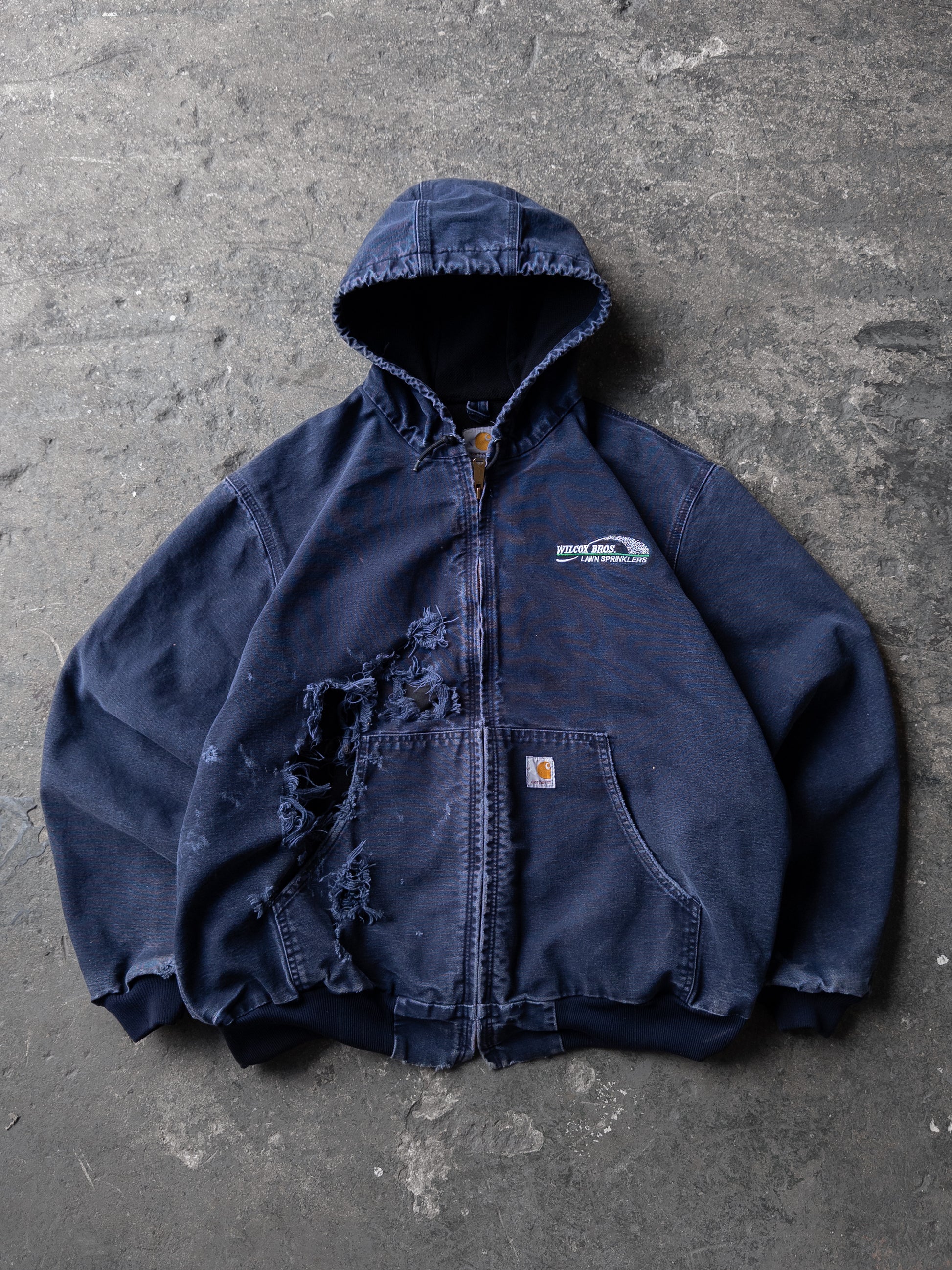 Vintage 2000s Carhartt Navy Blue Distressed Hooded Jacket - XL