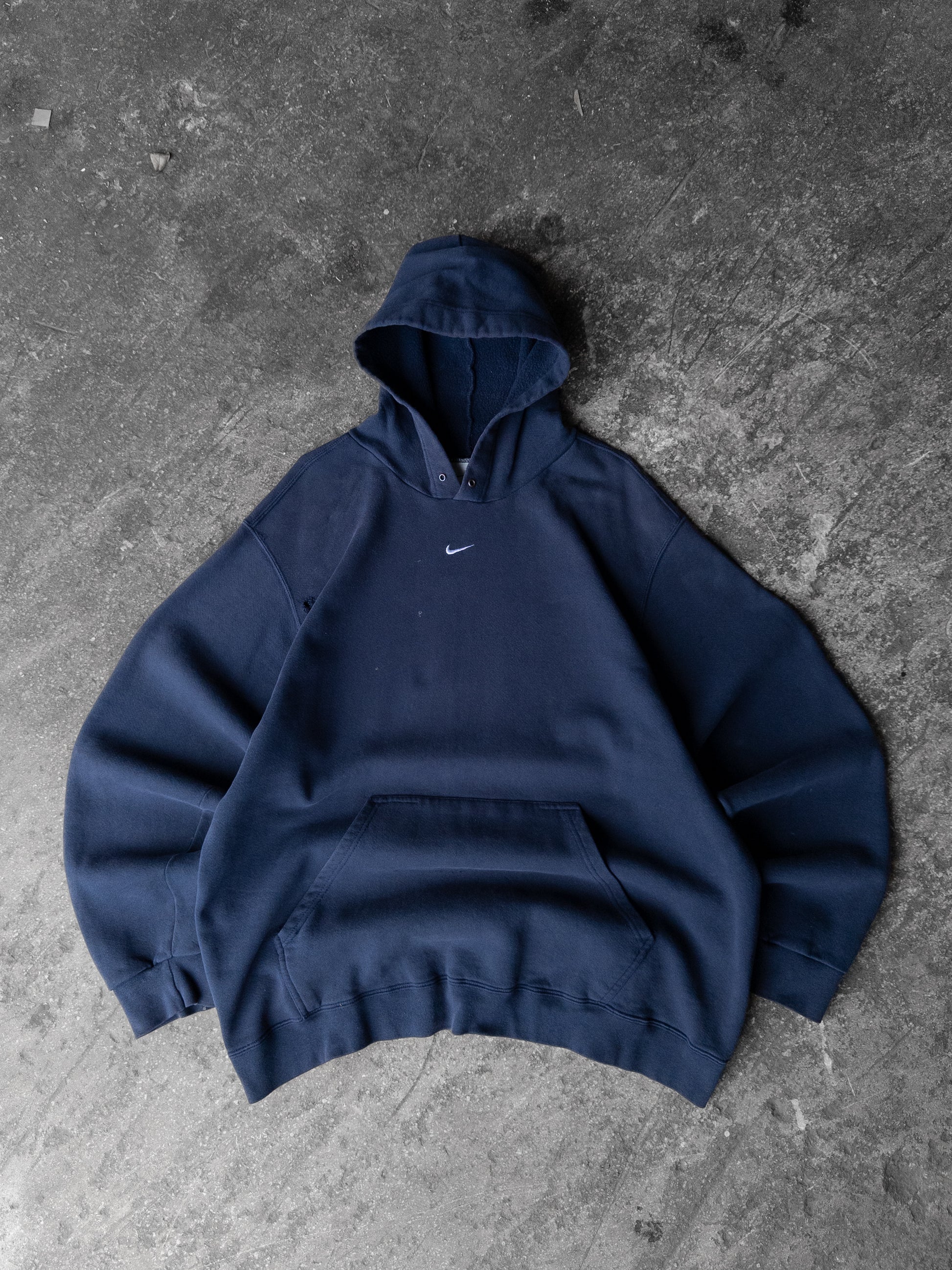 Vintage 2000s Nike Navy Blue Center Swoosh Hoodie - XL