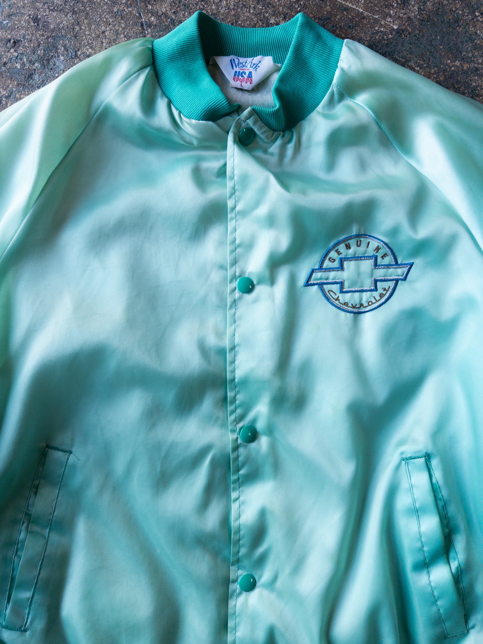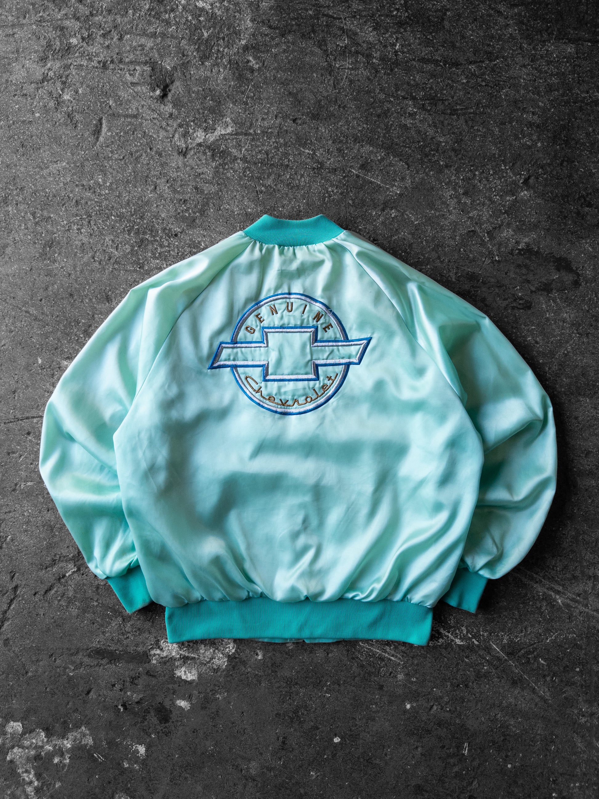 Vintage 80s Genuine Chevrolet Teal Satin Bomber Jacket - Large