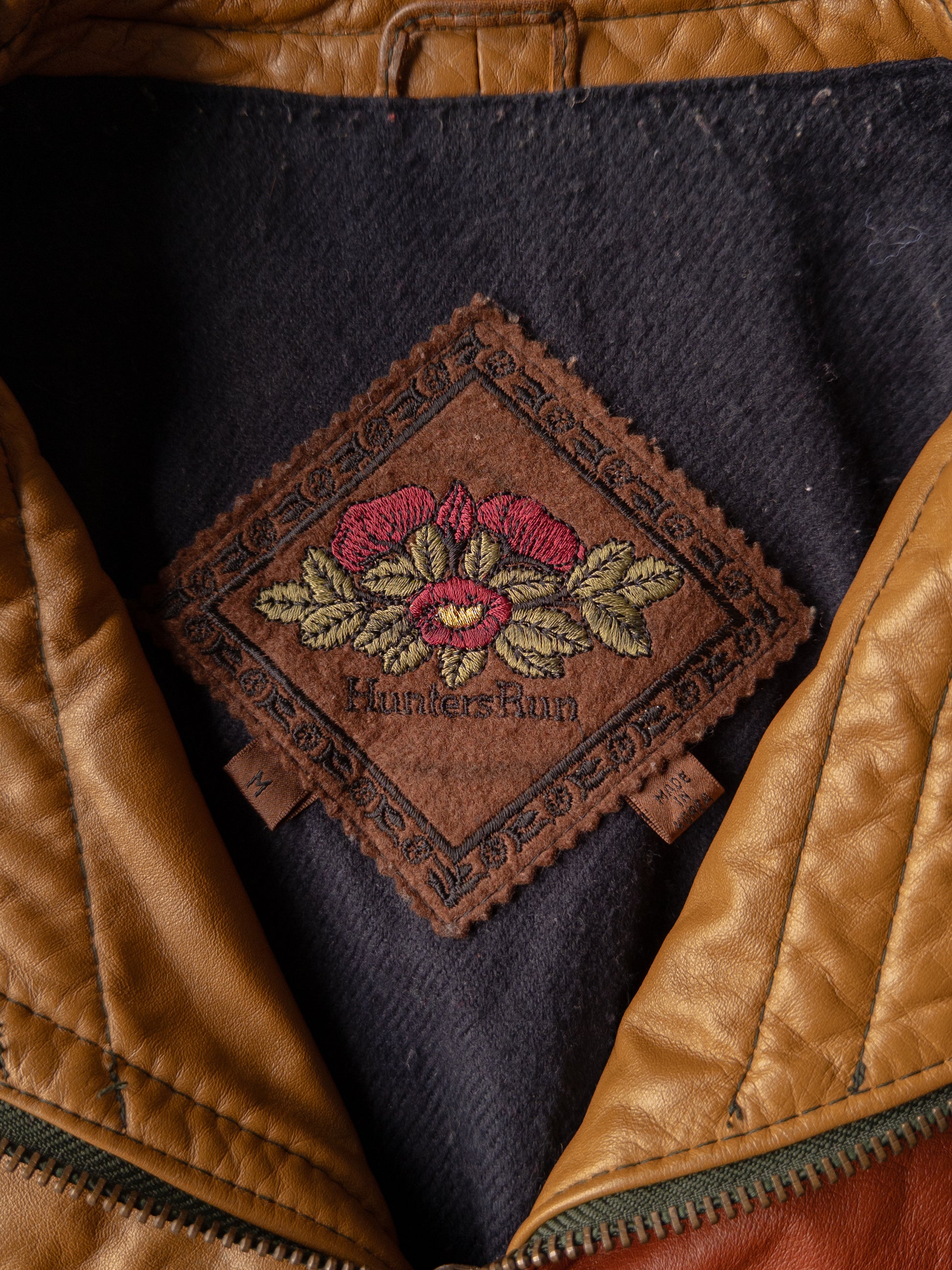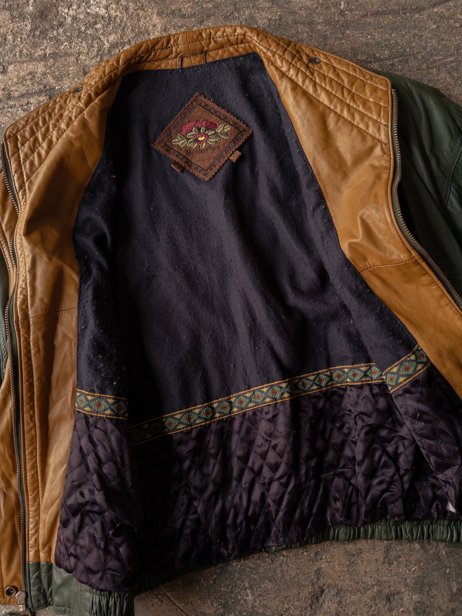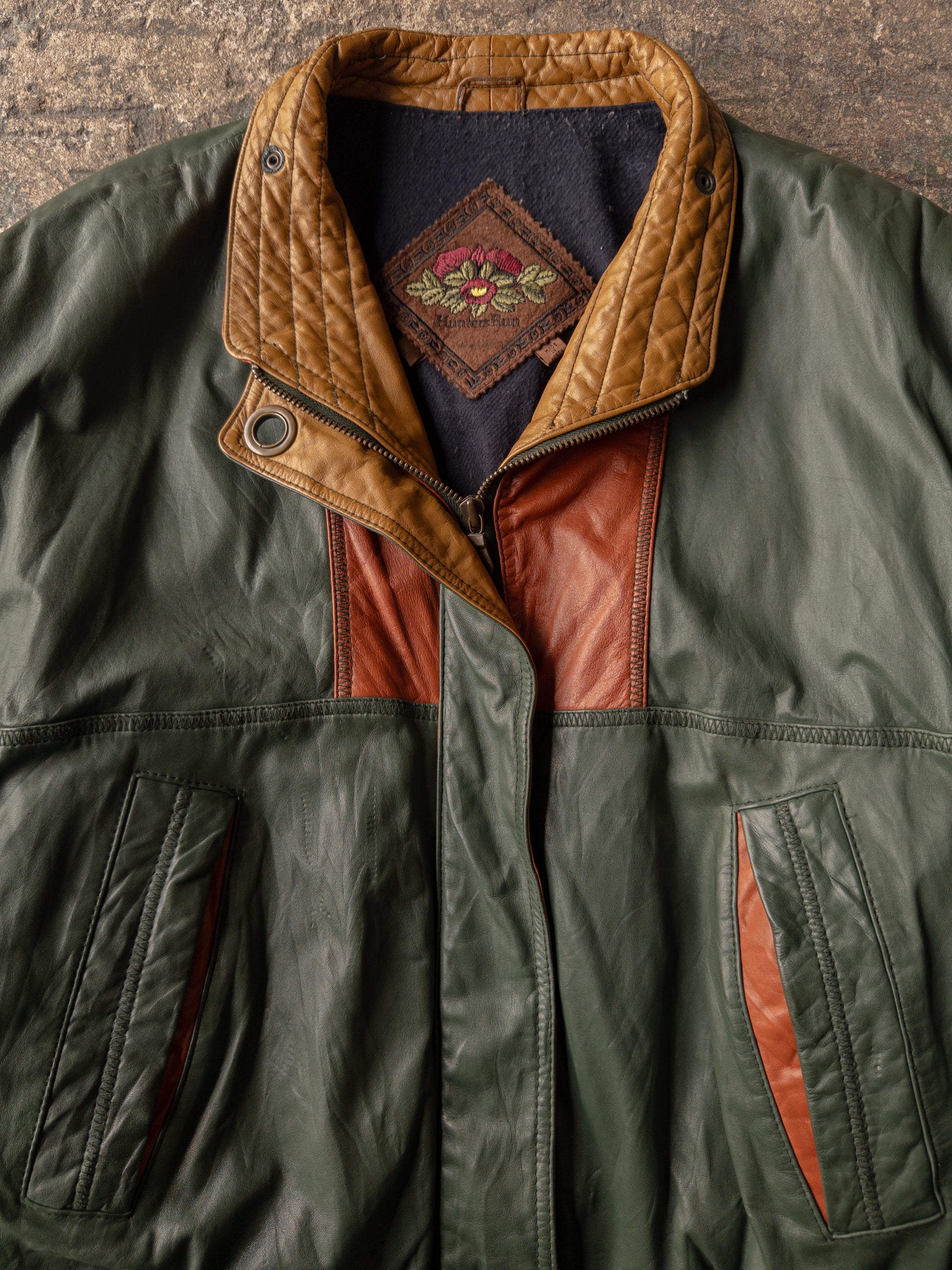 Vintage 90s Hunters Club Olive Green Leather Bomber Jacket - Medium